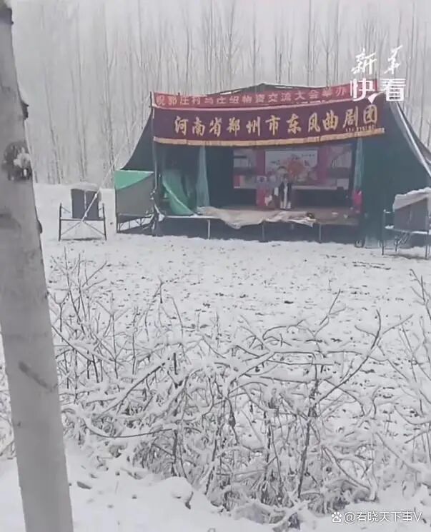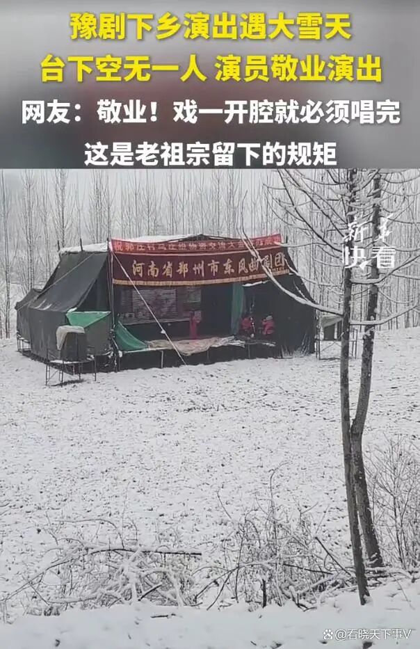 尽管如此,豫剧团的演员们并没有放弃,他们穿着单薄的戏服,在风雪中坚持完成了整场演出。