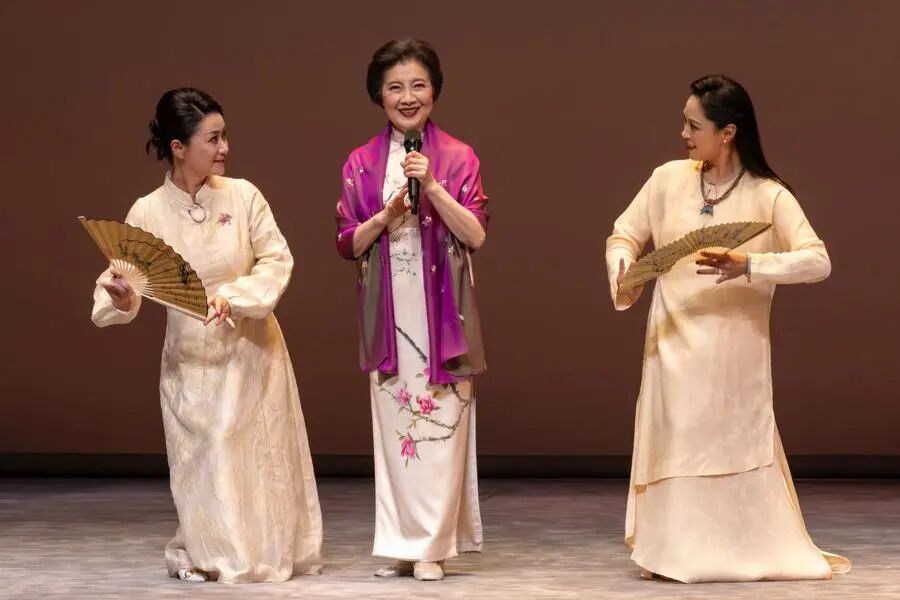85岁的著名昆曲表演艺术家张洵澎身着玫红色华服,与上昆演员袁佳、汪思雅款款上台出演《牡丹亭·寻梦》选段,“你们要成为杜丽娘的好例子,更要成为汤显祖的知音。”张洵澎循循善诱,“闺门旦有哪‘三人’?”两个女学生抢答着“青春可人、美丽动人、风骨迷人!”于是,三位“杜丽娘”唱起来。