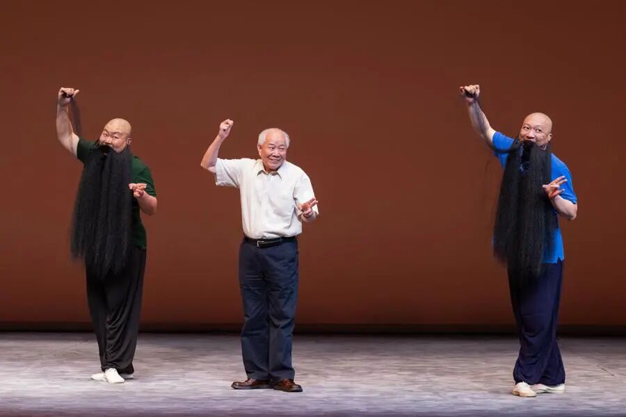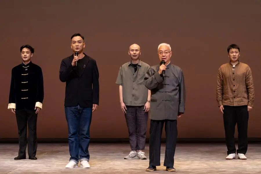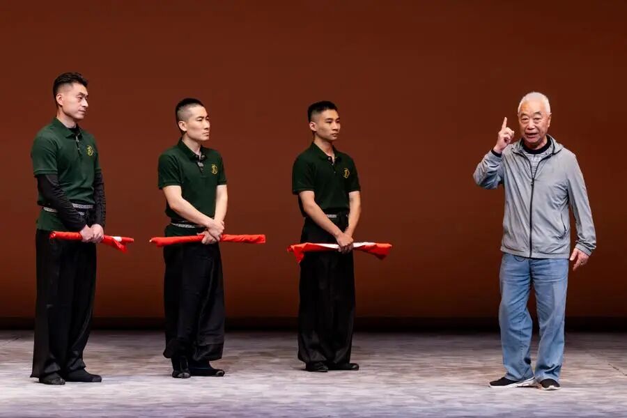 张铭荣和三位身形结实的青年演员也不甘示弱,为观众带来昆曲丑角“五毒戏”之一《连环记·问探》,青年演员手中的“探”字旗甩、抛、飞、舞,演变出很多身段来,展示了上昆的“改良”版本。下场前观众席叫好声不断,满头白发的张铭荣面向观众热切地喊出:“感谢观众对我们青年人的厚爱!”