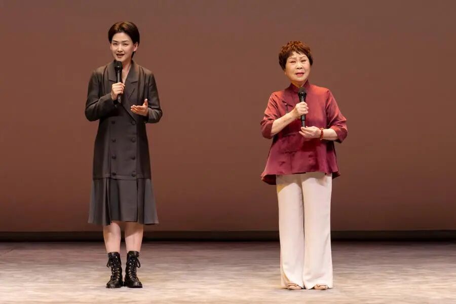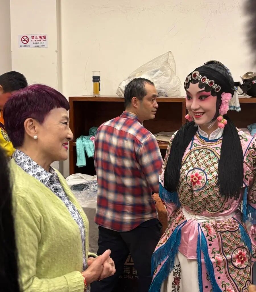 舞台后台,老中青交流不断,临上台前,张洵澎还在与学生汪思雅嘱咐着《瑶台》,“既有文戏又有武戏,不要习惯了闺门旦的温柔,记住‘文不能温’。”汪思雅脸颊上还贴着为发饰保湿的贴片,又把唱词、招式熟悉了一遍。她告诉记者,这是她们的“学馆”日常,“张老师教我们一直是细致入微的,一招一式、每一个咬字、每一个唱腔、每一个动作、每一个演示,都非常细腻。”